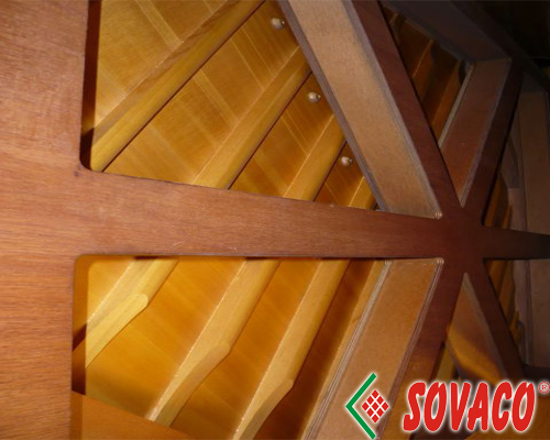 Bảng cộng hưởng (Soundboard) bao gồm 2 bộ phận chính là: xương sườn (Ribs) và ngựa đàn (bridge).